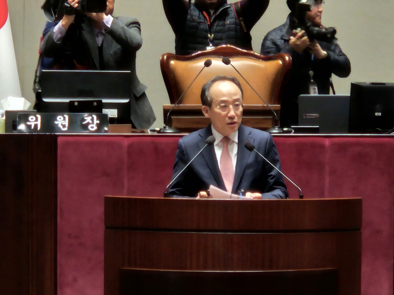 또 최상목 경제부총리는 서울정부청사에서 기자회견을 열고 “정부안 자동부의를 막기 위해 단독 처리가 불가피했다는 야당의 주장은 설득력이 없다. 그동안 자동부의 되더라도 매년 여야가 합의해 수정안을 처리했기 때문”이라며 야당을 질타했다.
