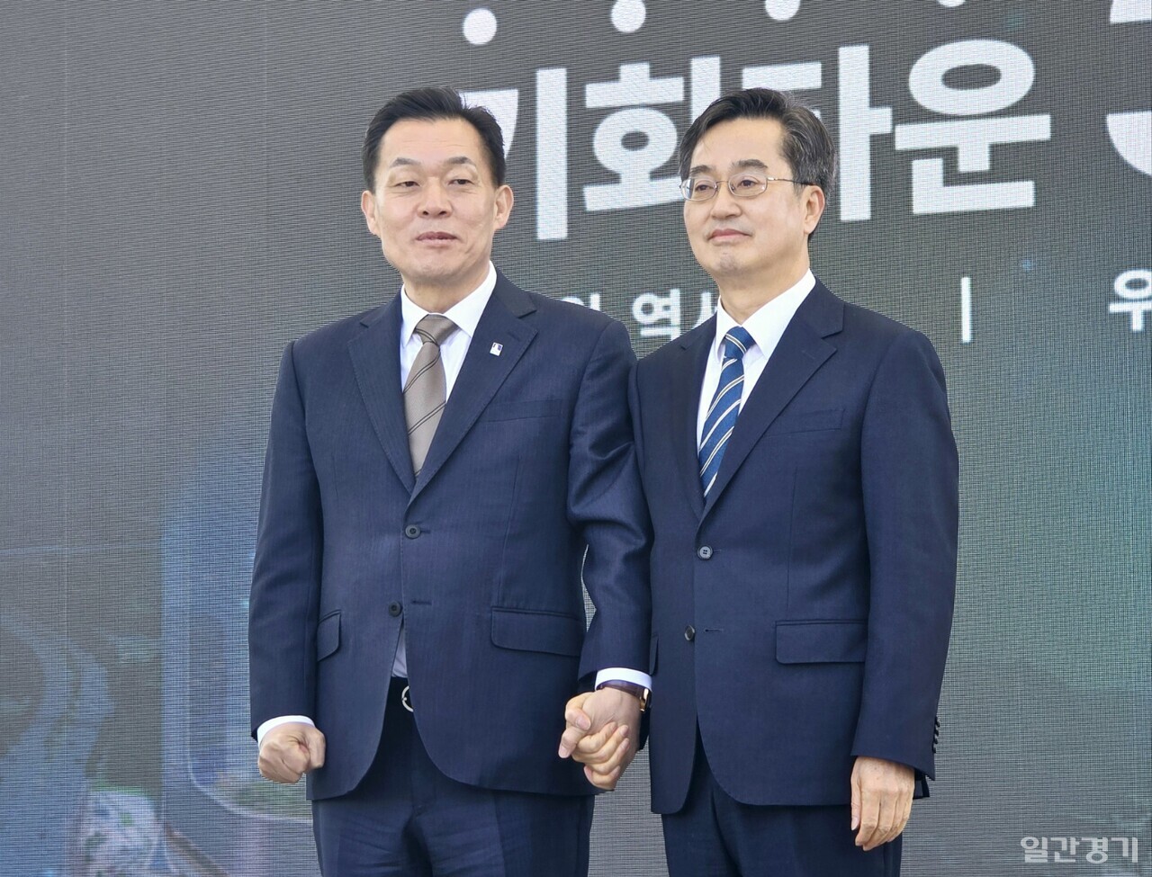 김동연 경기도지사와 이재준 수원시장은 3월11일 수원월드컵경기장에서 우만 테크노밸리 개발 계획을 발표했다.